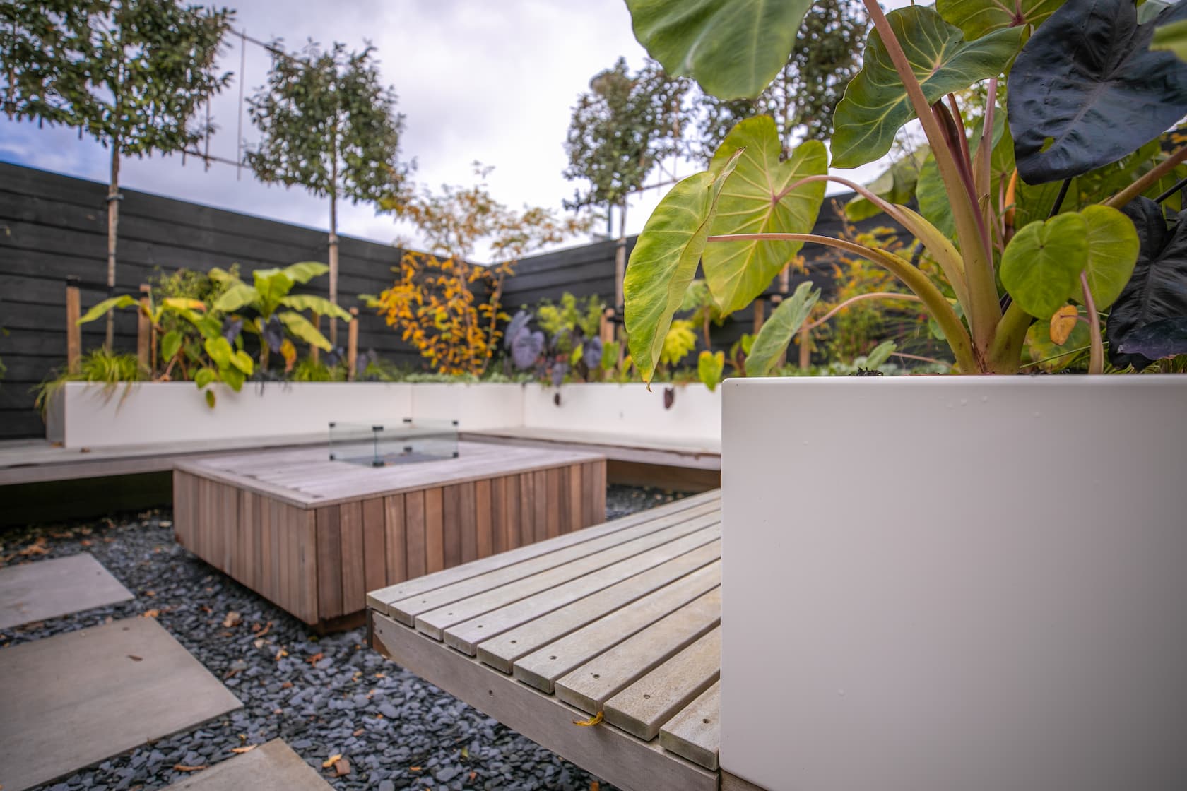 Naast losse banken kunt u ook kiezen om de bank te combineren met een plantenbak of keerwand. Zo is de constructie multi-inzetbaar en geeft het ook een uniforme, rustige uitstraling in de tuin.